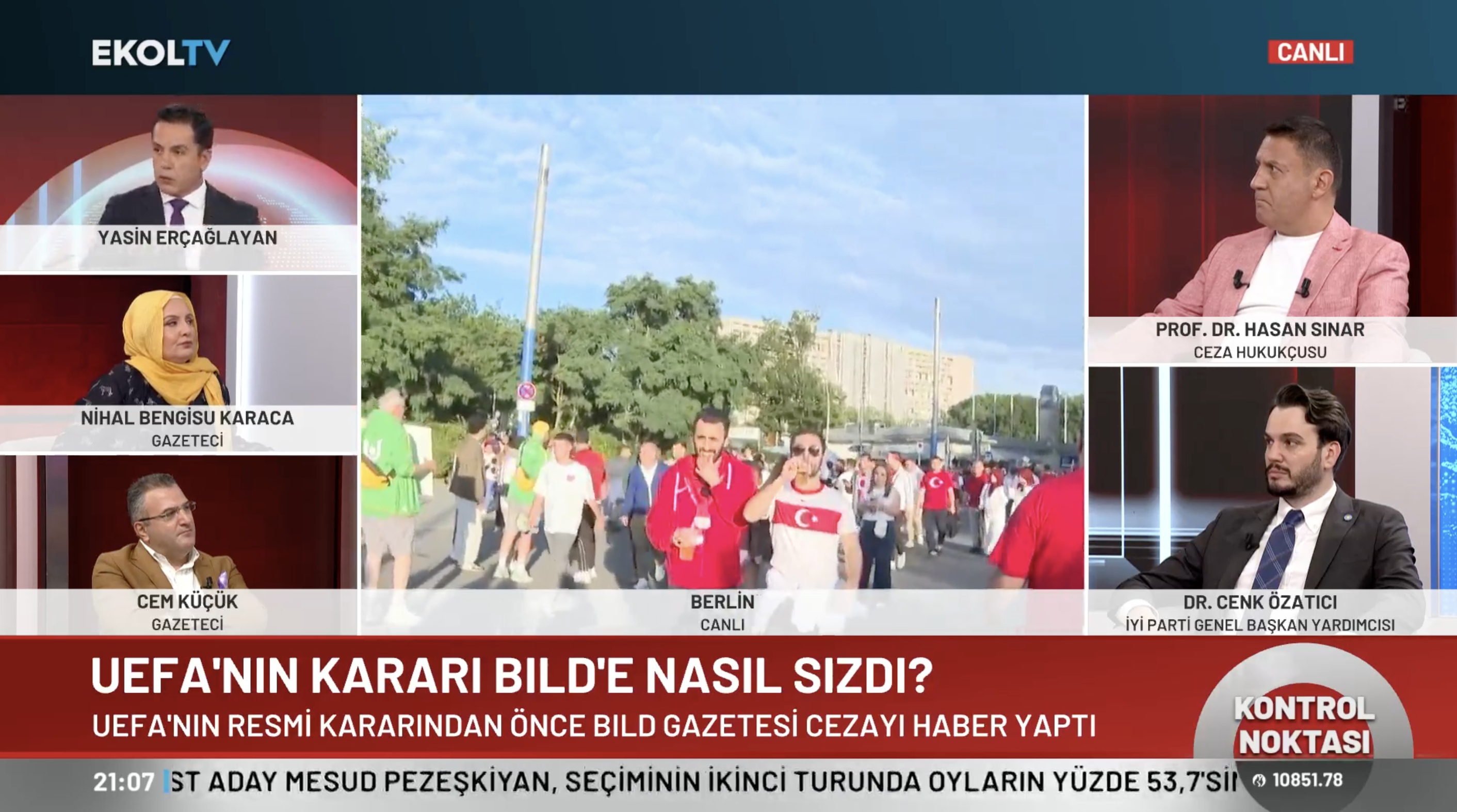 UEFA’nın skandal kararının perde arkasında neler var? Merih Demiral’ın gol sevinci kimleri rahatsız etti? Bozkurt selamı diplomatik krize neden olur mu? Yasin Erçağlayan sordu, İYİ Parti Genel Başkan Yardımcısı Dr. Cenk Özatıcı, akademisyen Prof. Dr. Hasan Sınar, gazeteciler Nihal Bengisu Karaca ve Cem Küçük Kontrol Noktası’nda yanıtladı. Gündemdeki tartışmalar öncesi Ekol TV muhabirleri ise kritik noktalardan taraftarın nabzını tuttu.